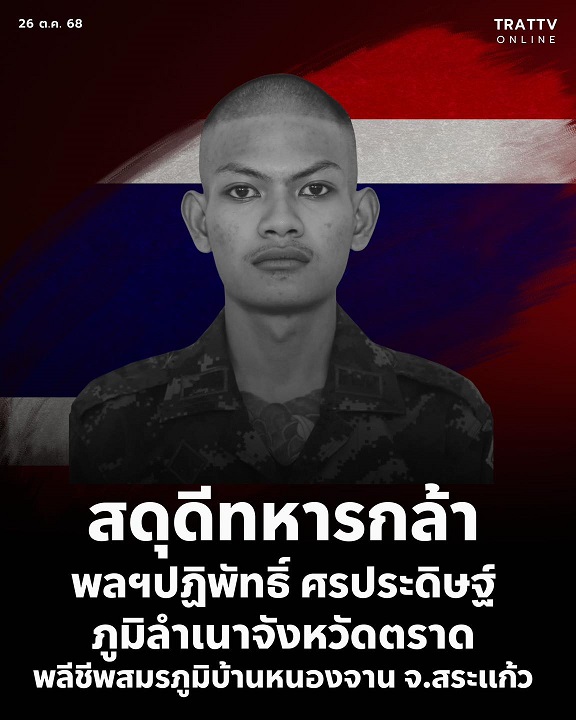 สดุดีทหารกล้า พลฯปฏิพัทธิ์ ศรประดิษฐ์ ภูมิลำเนาจังหวัดตราด พลีชีพสมรภูมิบ้านหนองจาน จ.สระแก้ว สดุดีท