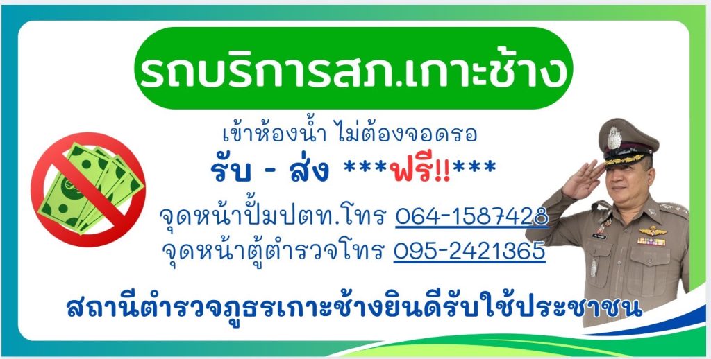 บริการนักท่องเที่ยว 14 เมษายน 2025 โดย KOHchang / ข่าวภารกิจผู้บังคับบัญชา สภ.เกาะช้าง ภายใต้การอำนวยการของ พ.ต.อ.วัลลภ กังธาราทิพย์ ผกก.สภ.เกาะช้างอำนวยความสะดวกรถรับส่งเข้าห้องน้ำ ฟรี ในช่วงวันหยุด สงกรานต์